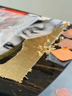 Chaos golden hour is an original mixed media work, with 24k gold leaf hand applied to a giclee’ print on archival cotton rag.