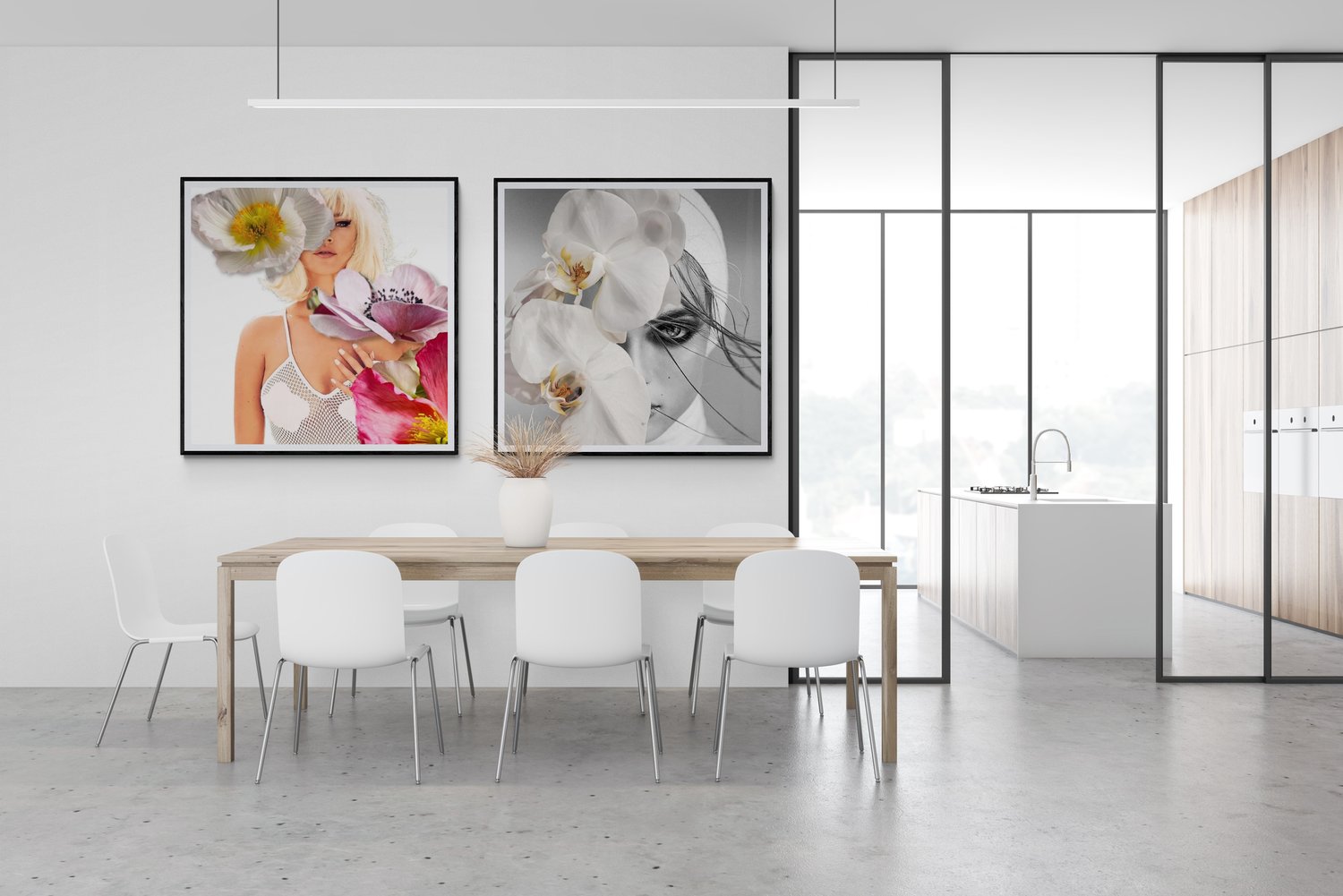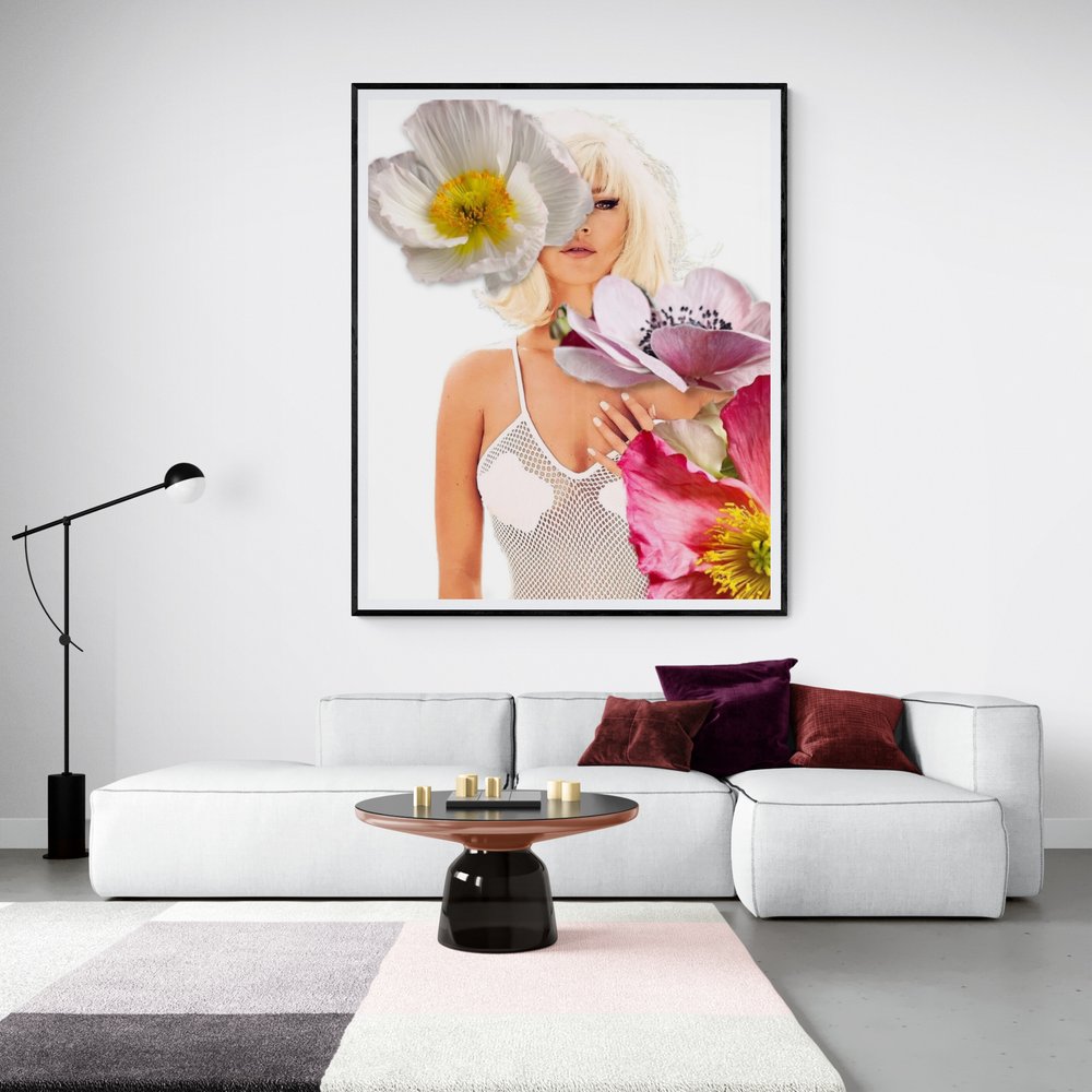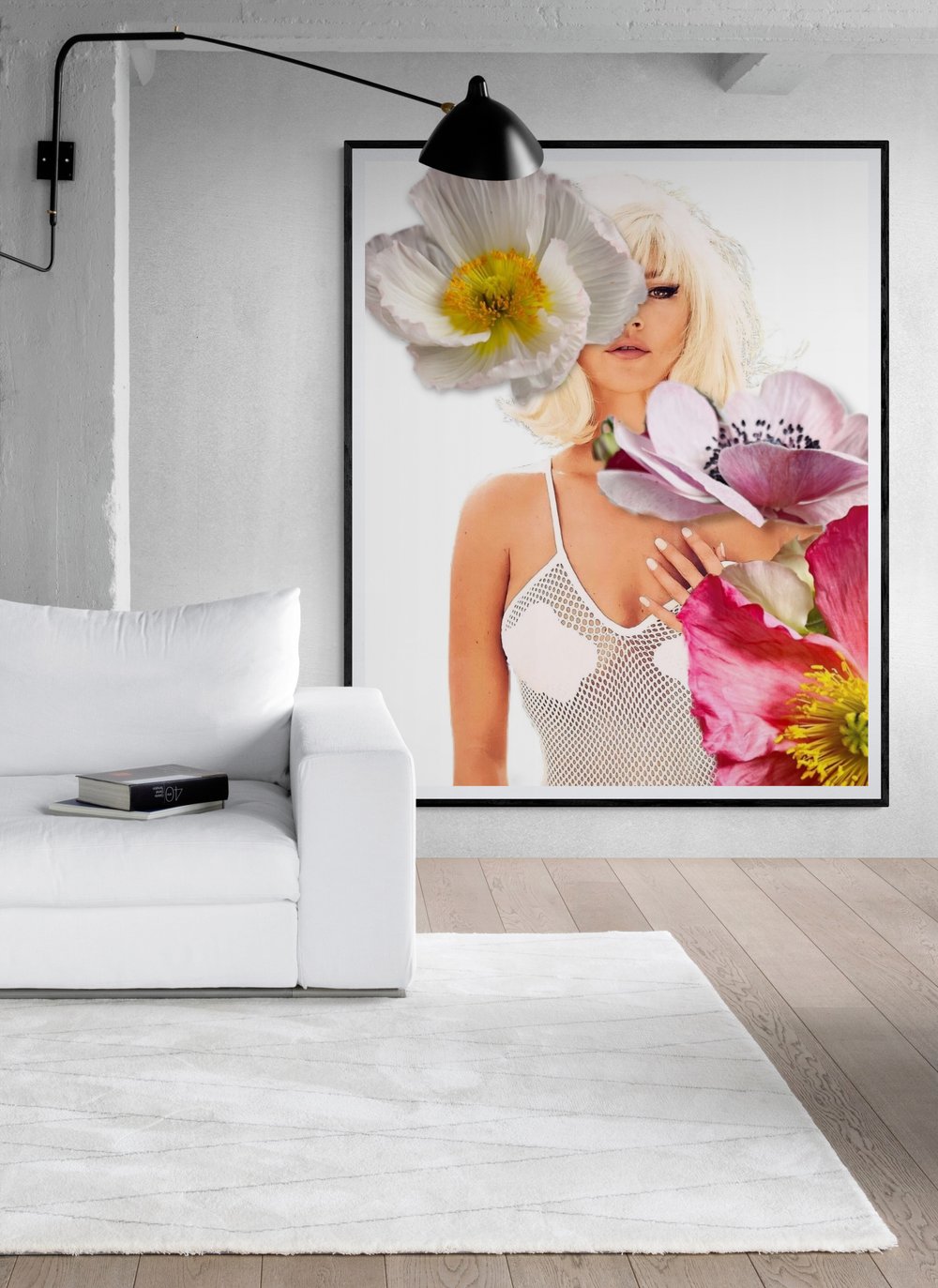 This is an original artwork by Amanda Johnstone using digital collage and layering. Source image unknown from magazine photography of Poppies are original taken separately and collaged by Amanda Johnstone