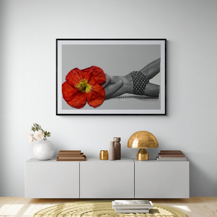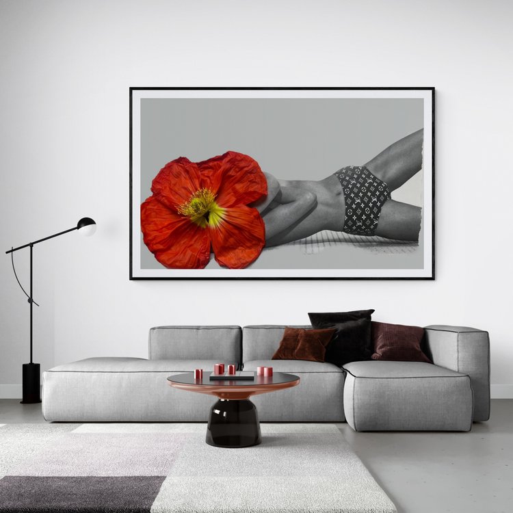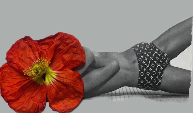 This is an original artwork by Amanda Johnstone using digital collage and layering. Source image unknown from magazine photography of poppies from home.