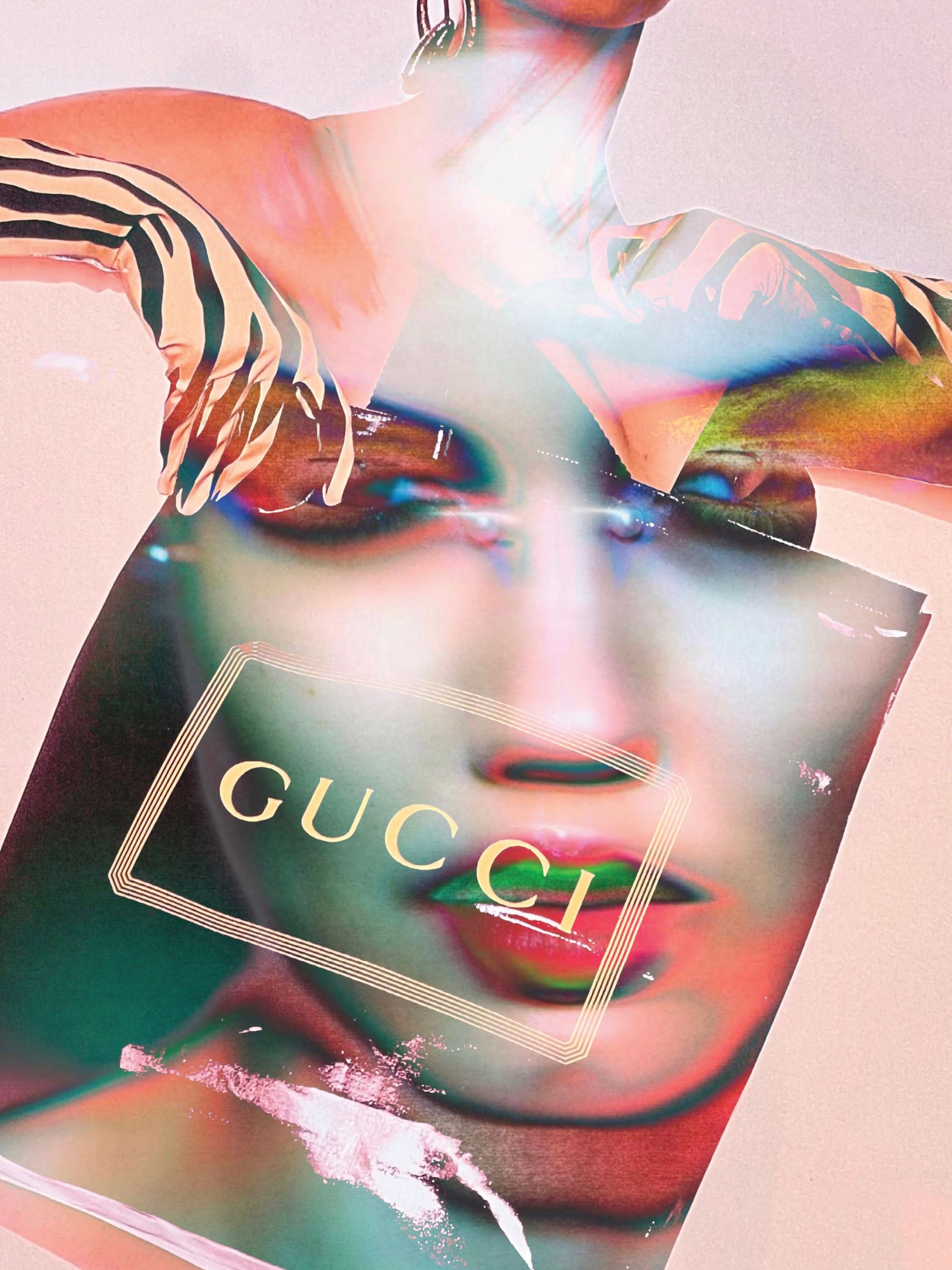 This is an original artwork by Amanda Johnstone using digital collage and layering. Source image unknown from magazine.