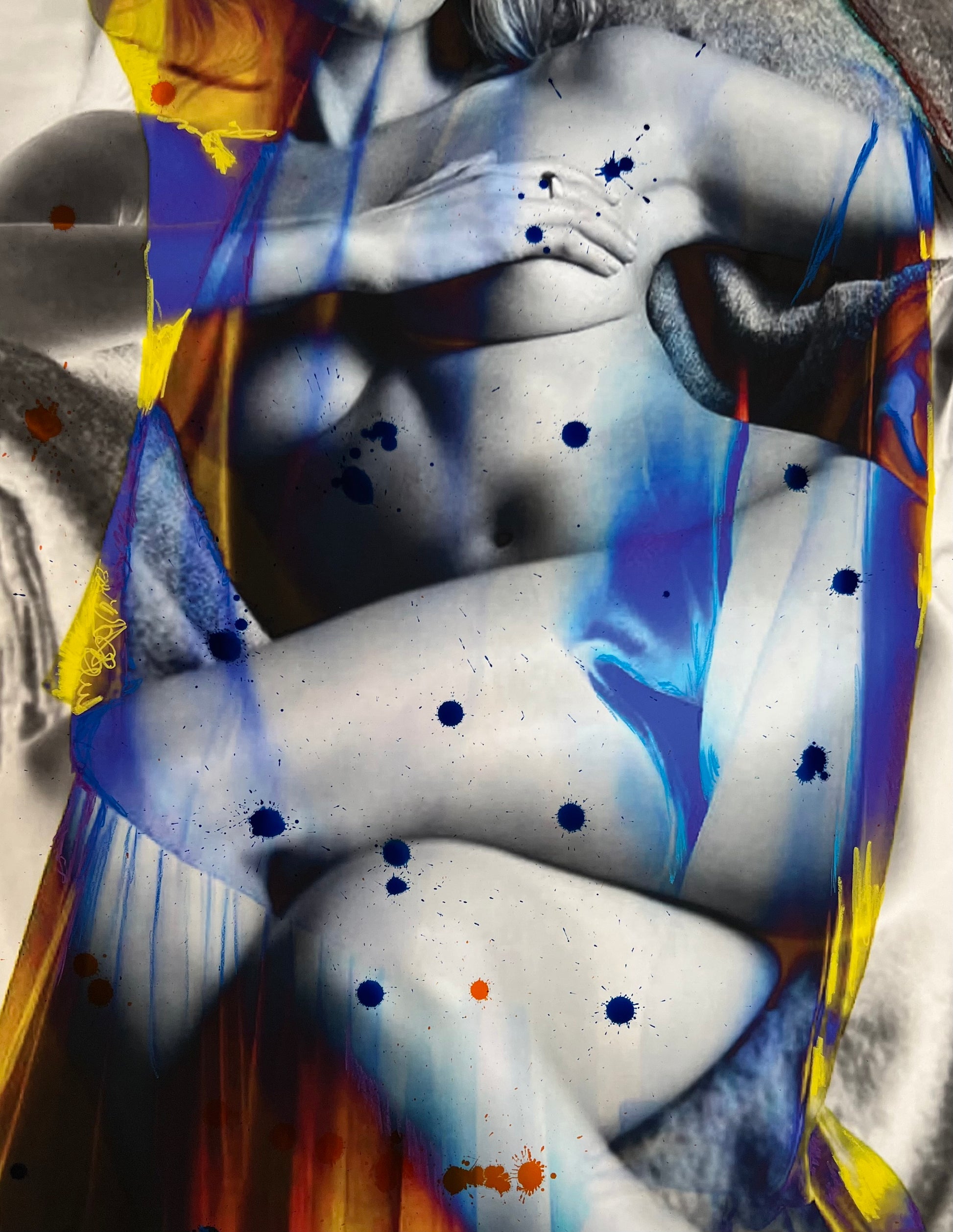 Inked is a mixed media piece using oil pastels, and pigment inks over archival Giclee’ print on cotton rag archival paper.