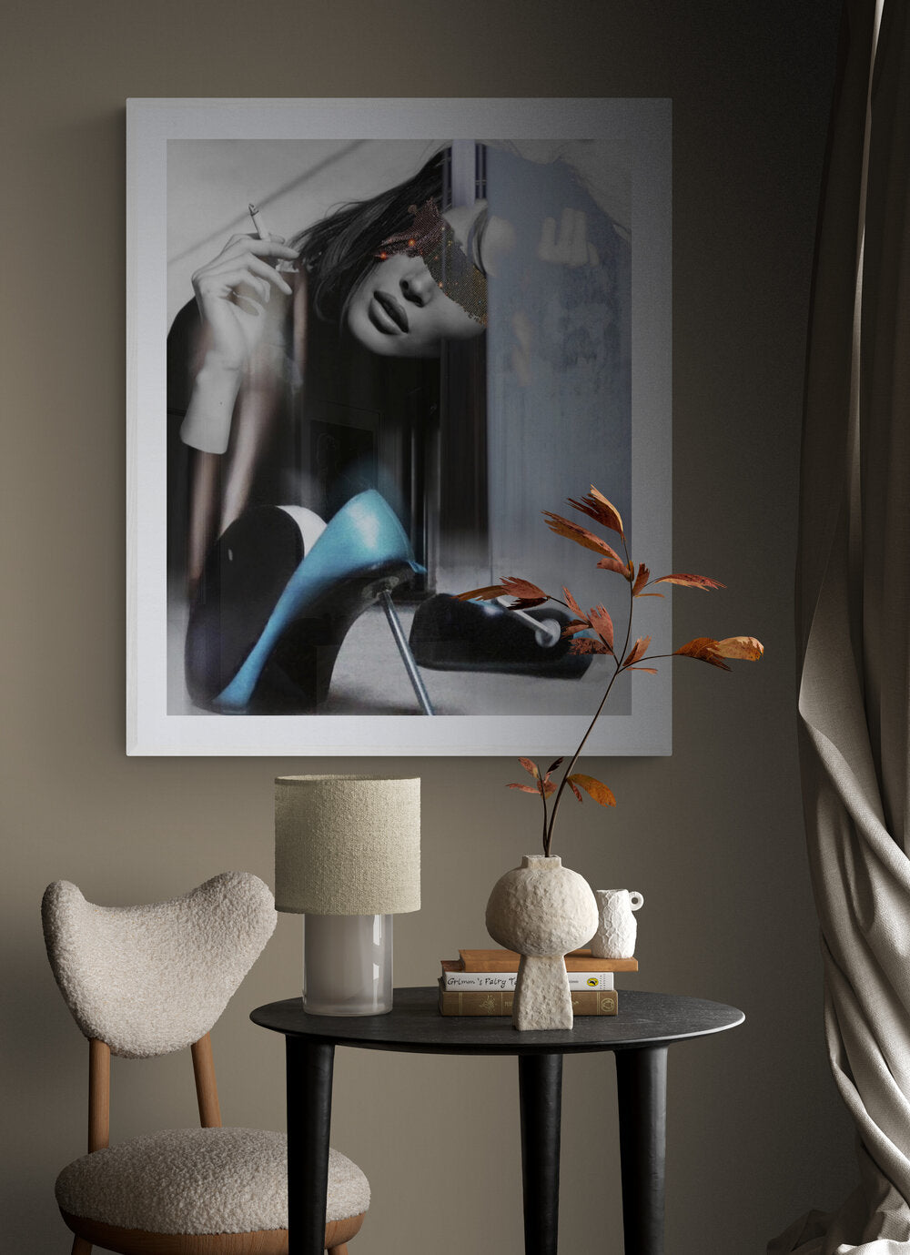 This is an original artwork by Amanda Johnstone using digital collage and layering source image unknown from collected magazines .