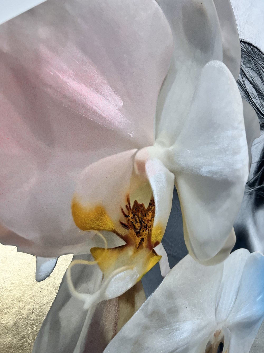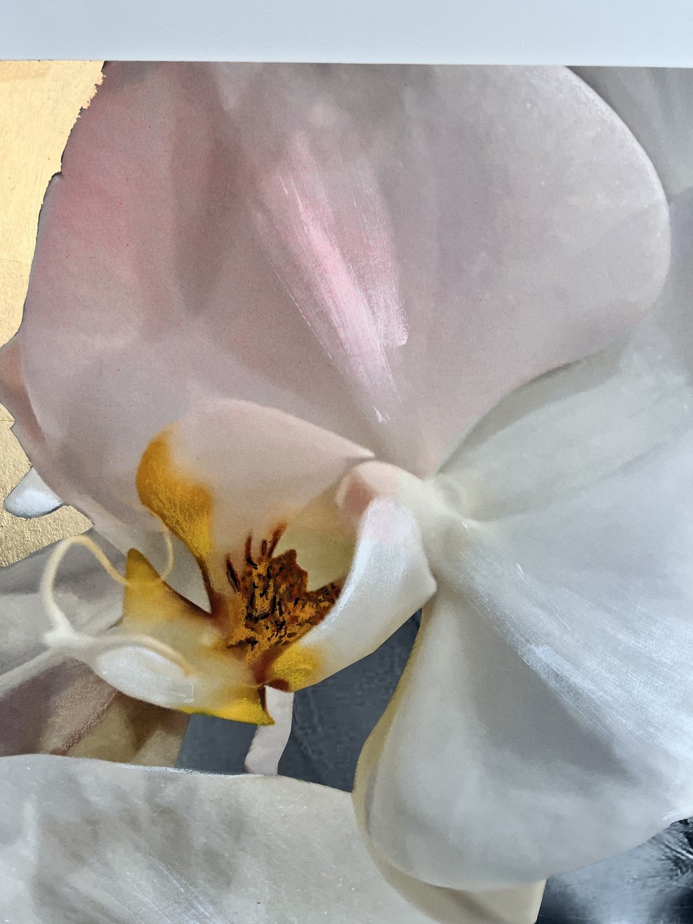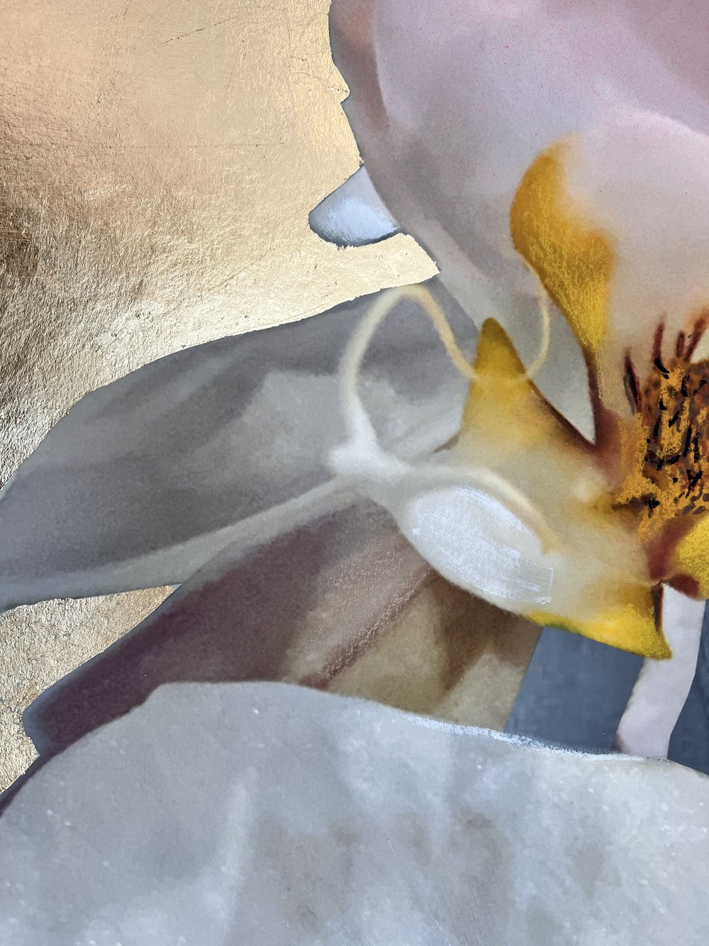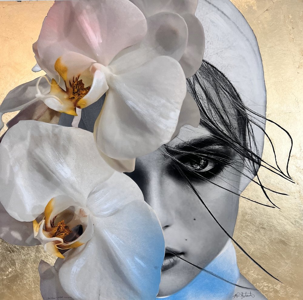 Willow Pastel is a unique piece created by hand applying acrylic paint, charcoal, light molding paste Spray paint, oil sticks to a giclee’ print on archival cotton rag.